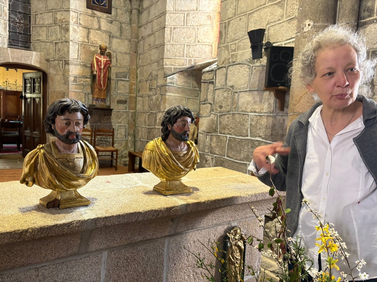 Retour de deux bustes de Saint-Privat partis quelques mois en restauration. Restauration réalisée par Mme Edöcs, restauratrice du patrimoine.